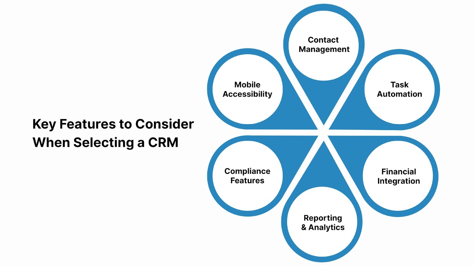 - Top CRM features to prioritize include contact management, task automation, financial tool integration, reporting, and mobile access.